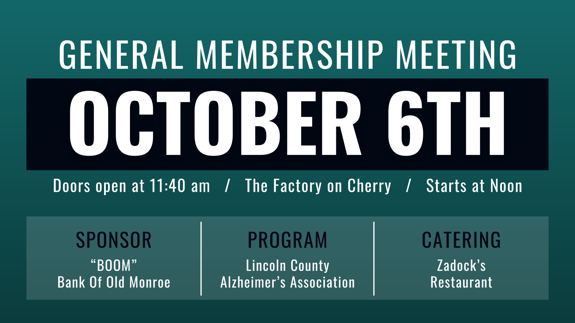 Catering numbers must be submitted 5-7 days prior to meeting date. In order to receive a credit toward next month's meeting, your cancellation must be received before 3pm on the Tuesday prior to the meeting date.